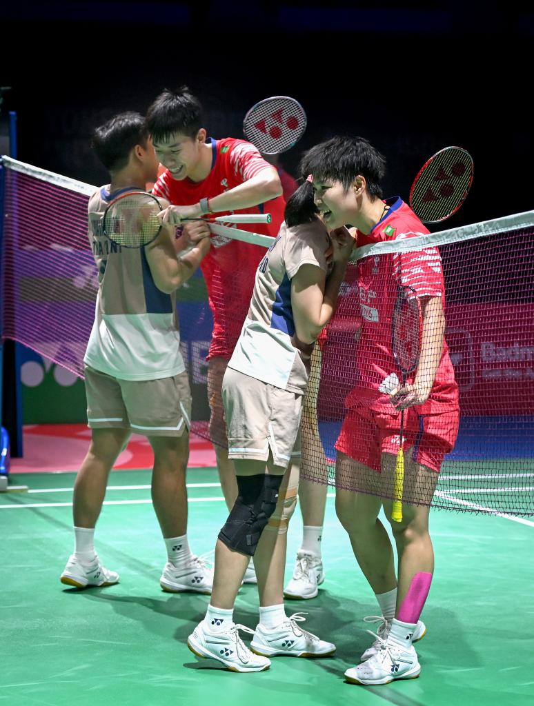 1月17日,德差波(左一)/苏皮萨拉(右二)和冯彦哲(左二)/黄东萍在竞赛后彼此致意。
